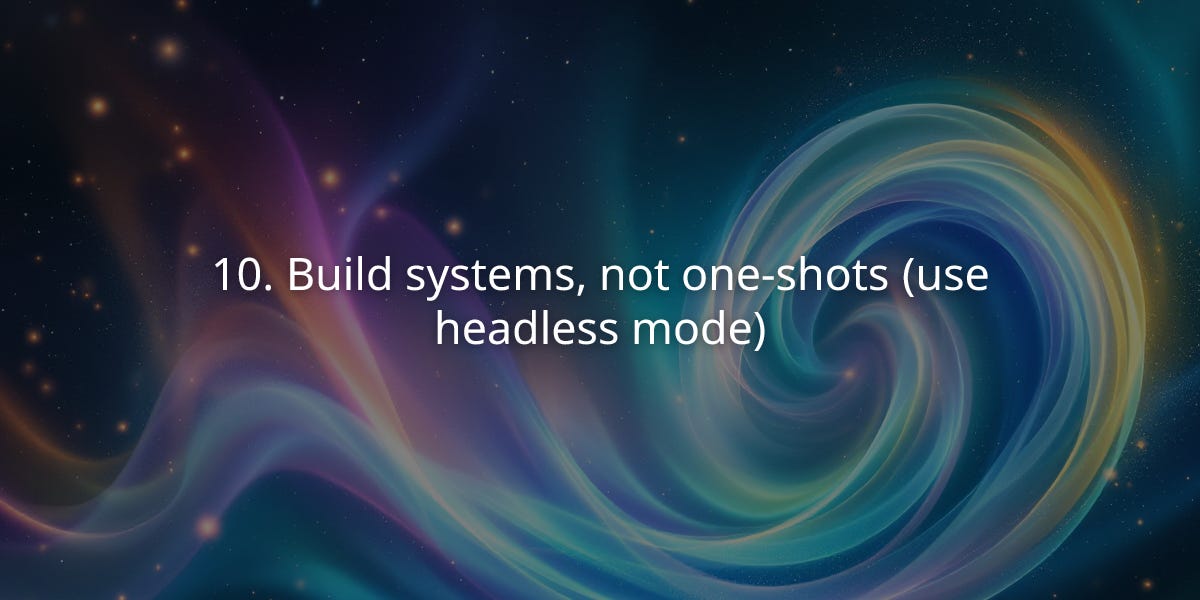 10. Build systems, not one-shots (use headless mode)