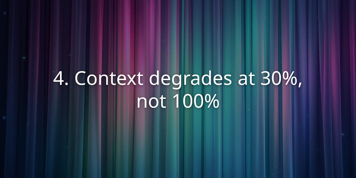 4. Context degrades at 30%, not 100%